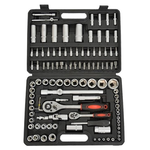 Gola sada složená ze 108 dílů. Sada obsahuje 2 ráčny, ořechy, bity a další díly s nejpoužívanějšími rozměry 1/2" a 1/4". Nářadí je vyrobeno z Cr-V a je uloženo v plastovém kurfu. Celou sadu tak můžete snadno přenést.