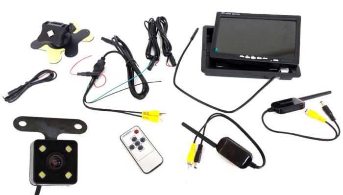 1 * Couvací kamera, 1 * 7 "LCD monitor přijímač, 1 * Stojan pro LCD monitor, 1 * AC / DC napájení pro LCD monitor, 1 * Uživatelská příručka