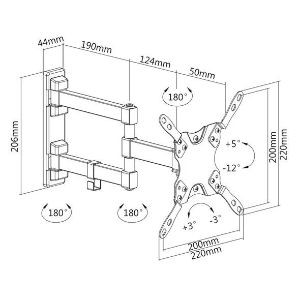 Držák pro televizory o velikosti 13''-42'' lze nastavit v úhlu až +90°/-90° horizontálně a +5 ° /-12 ° vertikálně. Navíc máte možnost uspořádání kabelů , abyste je udrželi uklizené a dodali svému bytu estetickou a elegantní atmosféru.